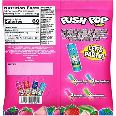 Thông tin sản phẩm Push Pop Christmas Candy Variety Pack, 10 Ct Lollipops Individually Wrapped in Fruity Flavors, Bulk Individually Wrapped Hard Candy, Birthday Party Favors, Stocking Stuffers, Kids Gifts