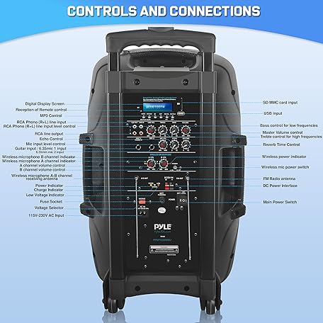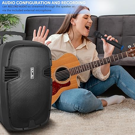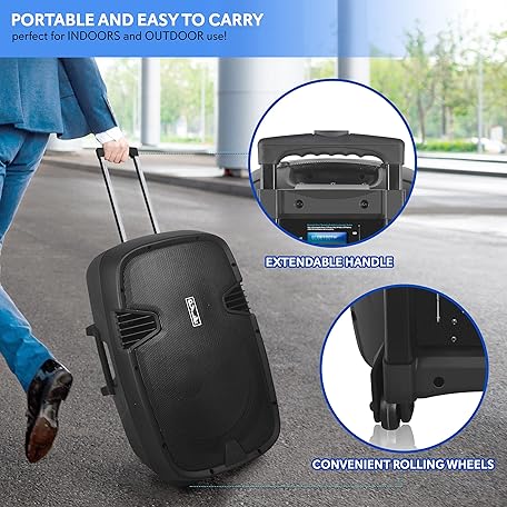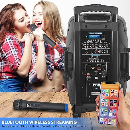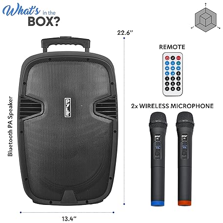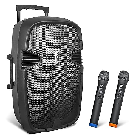 Thông tin sản phẩm Pyle 1000 Watt, 12" Bluetooth PA Speaker - Indoor / Outdoor Portable Sound System with (2) UHF Wireless Microphones, Rechargeable Battery, Audio Recording, USB/SD Readers, FM Radio (PPHP1235WMU),Black