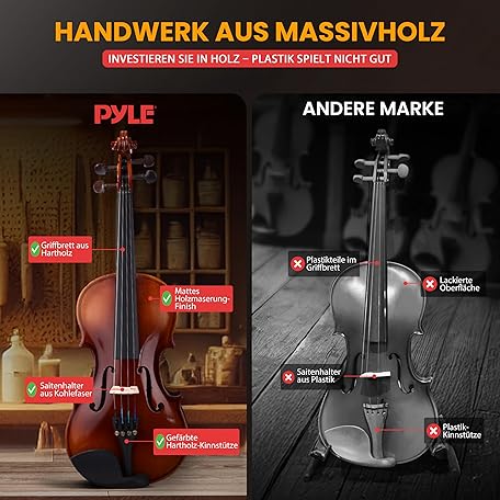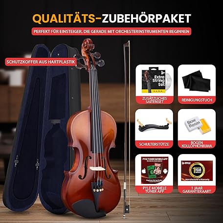 Thông tin sản phẩm Pyle 4/4 Full Size Acoustic Violin for Beginners – Complete Violins Set with Hard Case, Bow, Extra Strings, Rosin, Full Accessories Kit - Mobile App Tuner 2 Month Free Lessons for Kids & Adults