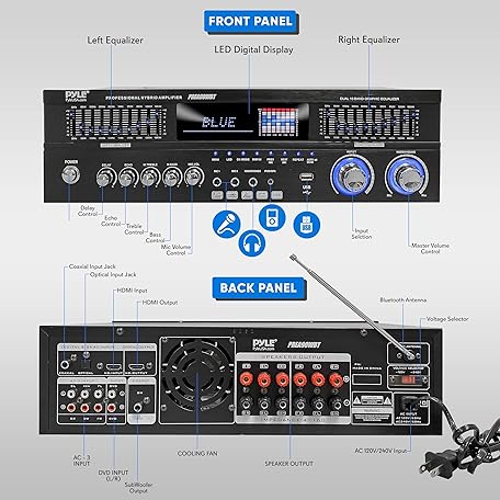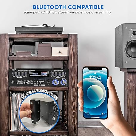 Thông tin sản phẩm Pyle 6-Channel Bluetooth Hybrid Home Amplifier - 1600W Home Audio Rack Mount Stereo Power Amplifier Receiver w/ Radio, USB/AUX/RCA/MIC, HD/OPT/COAX, AC-3, DVD Inputs, Dual 10 Band EQ - PREA90WBT
