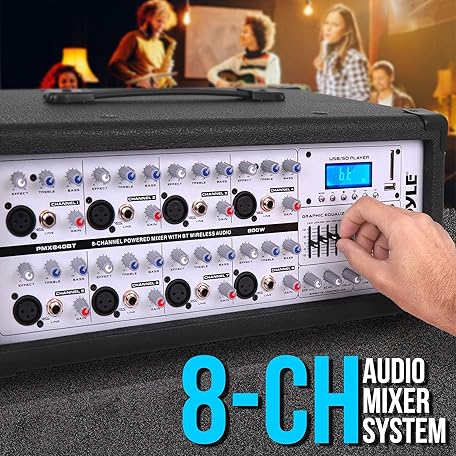 Sản phẩm Pyle 800W Bluetooth Stage Powered Mixer - 8-Channel Pro Audio Sound System with MP3/USB/SD Readers - RCA/1/4” Effects Loop - Aux Input - Digital LCD Display - Built-in Cooling Fan - PMX840BT đang được bán với giá ưu đãi là $174.3891 tại nước Mỹ.
