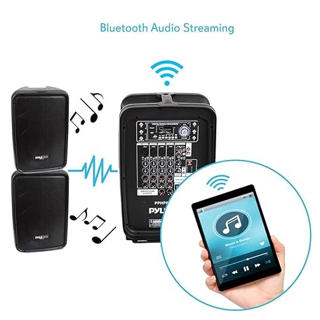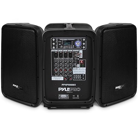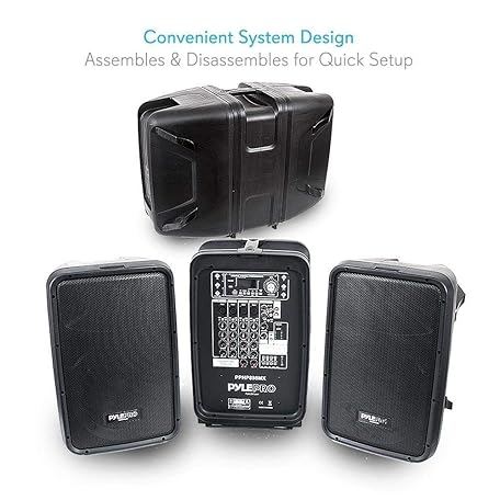 Thông tin sản phẩm Pyle Portable Bluetooth PA Speaker System - 600 Watt 8-Channel Amplifier Kit with 8" Subwoofer and 1" Horn Tweeter - Wireless, MP3, AUX, USB, XLR, RCA Inputs (Black)