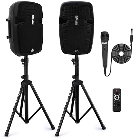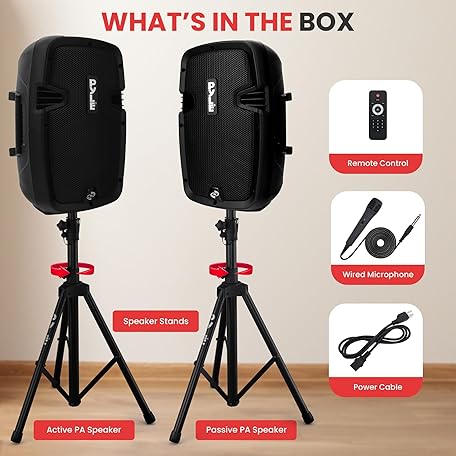 Thông tin sản phẩm Pyle Powered Bluetooth PA Speaker Kit - Event Ready - Just Plug In and Play Active and Passive 350w Loudspeakers with Wired Microphone, Speaker Stands, Remote - MP3/USB/SD/AUX inputs - PPHP849KT