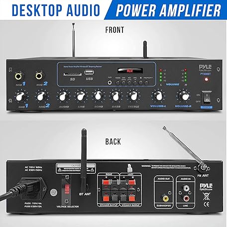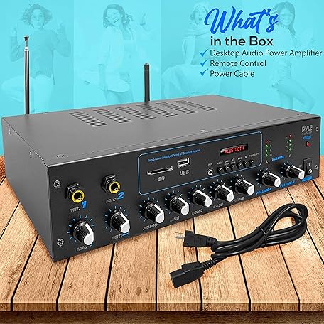 Thông tin sản phẩm Pyle Professional Powered Amplifier & Bluetooth Receiver Stereo Audio System, FM Radio, (2) 1/4'' Microphone Input Jacks, MP3/USB/SD/AUX Playback, LCD Display ID3 Tag Readout 600 Watt - PT506BT.5