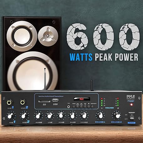 Thương hiệu Pyle là cái tên nổi tiếng được rất nhiều khách hàng trên thế giới chọn lựa. Với kiểu dáng đẹp mắt, sang trọng, sản phẩm Pyle Professional Powered Amplifier & Bluetooth Receiver Stereo Audio System, FM Radio, (2) 1/4'' Microphone Input Jacks, MP3/USB/SD/AUX Playback, LCD Display ID3 Tag Readout 600 Watt - PT506BT.5 là sự lựa chọn hoàn hảo nếu bạn đang tìm mua một món cho riêng mình.