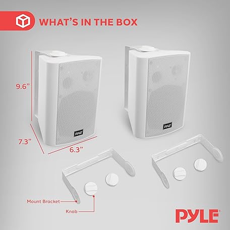 Thông tin sản phẩm Pyle Wall Mount Bluetooth Home Speaker System - Active + Passive Pair, Wireless, Water-resistant, Stereo Sound, AUX IN (White)
