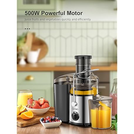 Thông tin sản phẩm QCen Juicer Machine, 500W Centrifugal Juicer Extractor with 3” Wide Mouth Feed Chute for Fruits & Vegetables, Easy to Clean, Stainless Steel, BPA-Free