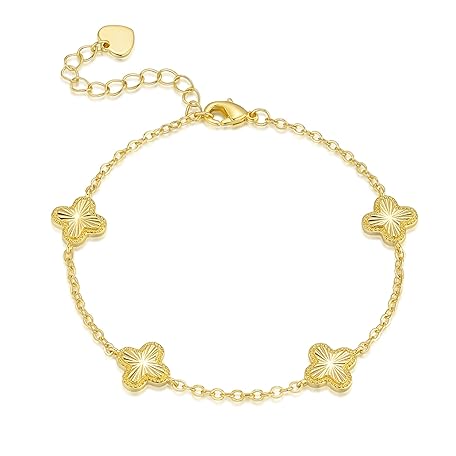 Qeces Gold Bracelets for Women 14K Gold Bracelets for Women Clover Bracelet for Womens with Adjustable Chain Lucky Dainty Four Leaf Clover Bracelet for Womens
