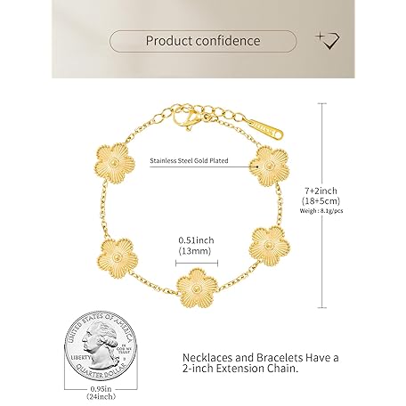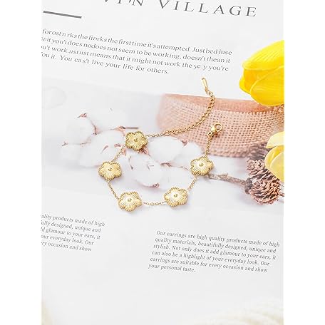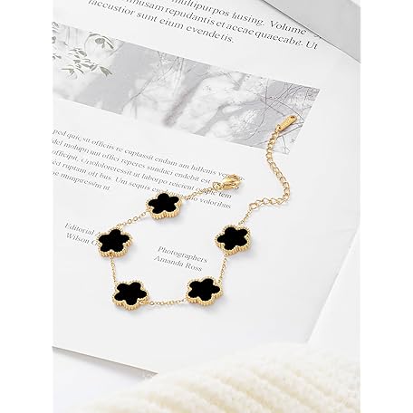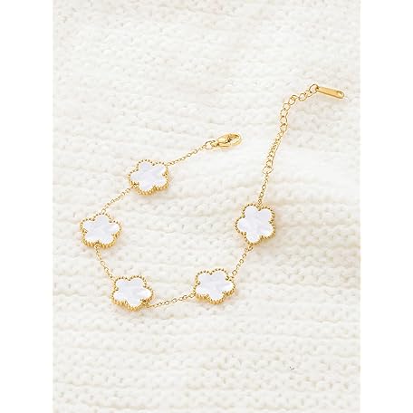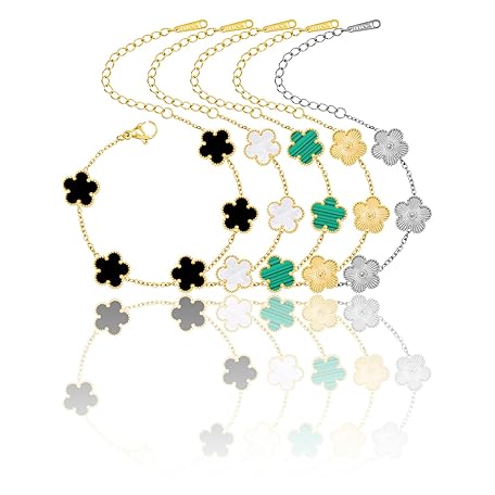 Qinpan 14K Gold Plated Dainty Four Leaf Clover Dot Bracelets for Women Lucky Flower Jewelry