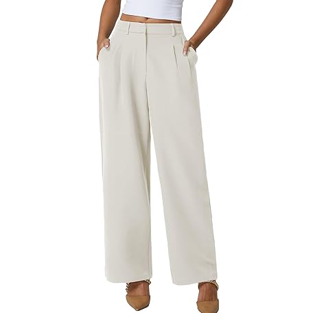 QINSEN Wide Leg Dress Pants for Women High Waisted Wrinkle Free Work Pants with Pockets Casual Slack