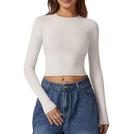 Sản phẩm QINSEN Women's Crewneck Long Sleeve Shirts Double Lined Fitted Crop Top Seam Cup Going Out Tops đang được bán với giá ưu đãi là $10.8891 tại nước Mỹ.