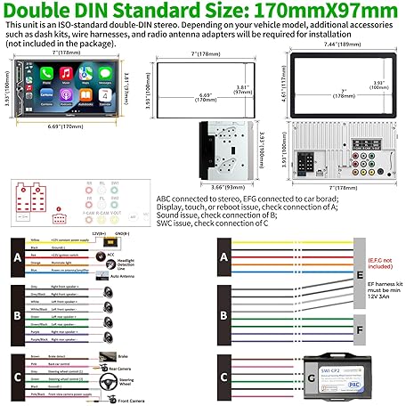 Thông tin sản phẩm [QLED Screen Upgrade] 7" Double Din Car Stereo with Dash Cam, Wireless Apple CarPlay and Android Auto, Bluetooth 5.3, 240W 4.2-Channel Audio Output, MirrorLink, Backup Camera, AM/FM Car Radio