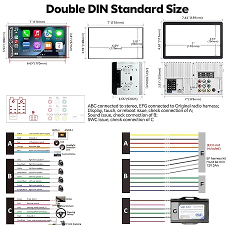 Thông tin sản phẩm [QLED Screen Upgrade] 7" Double Din Car Stereo with Wireless Apple CarPlay and Android Auto, 240W Powerful Sound, 4.2-Channel Audio Output, Bluetooth, MirrorLink, Backup Camera, AM/FM Car Radio