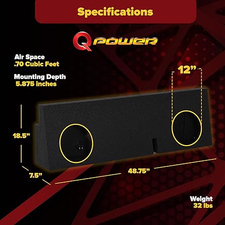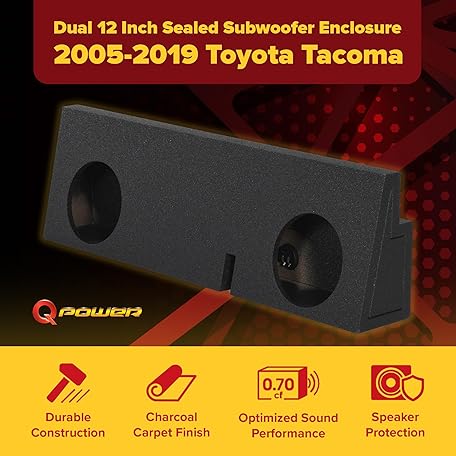 • QPower REC102 Dual 12-Inch Sealed Subwoofer Sub Box with Charcoal Bed Liner for 2005–17 Toyota Tacoma Double Cab