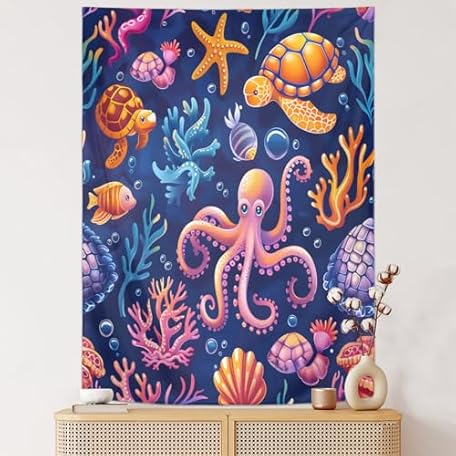 QsirBC Sea Creatures Collage 82"x54" Vertical Tapestry, Polyester Wall Hanging Tapestry Dorm Throws Backdrop for Bedroom, Living Room, Outdoor Picnic Beach Blanket