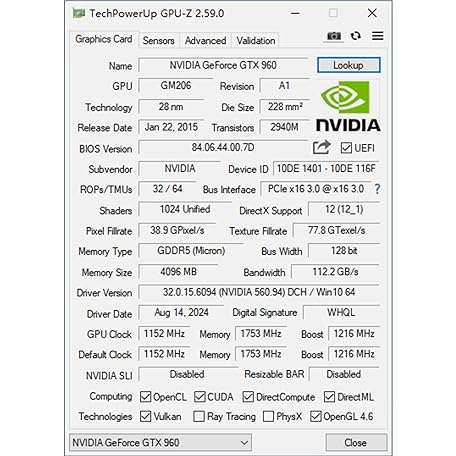 QTHREE Geforce GTX 960 4GB Graphics Card, GDDR5 128-bit, DP, HDMI, DVI, Video Card for PC, Computer GPU, PCI Express x16
