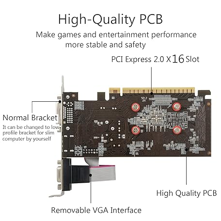 Thông tin sản phẩm QTHREE NVIDIA GT 730 4GB Graphics Card,DDR3,128-Bits,Video Card for PC,PCI Express x16,DVI-I,HDMI,VGA,Low Profile Computer GPU,DirectX 11,Support 2K