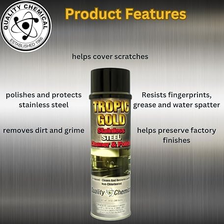 Sản phẩm Quality Chemical Tropic Gold Stainless Steel Cleaner and Polish - Magic Cleaner and Polish for Stainless Steel, Perfect Sink Stainless Steel Cleaner 14 oz Can (Pack of 12) đang được bán với giá ưu đãi là $80.66 tại nước Mỹ.