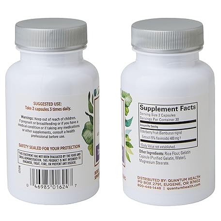 Sản phẩm Quantum Health Black Elderberry Supplement Sambucus Nigra Extract 400mg Daily Immune Support & Wellness Boost of Powerful Antioxidants for Women & Men - 60 Capsules đang được bán với giá ưu đãi là $16.241 tại nước Mỹ.