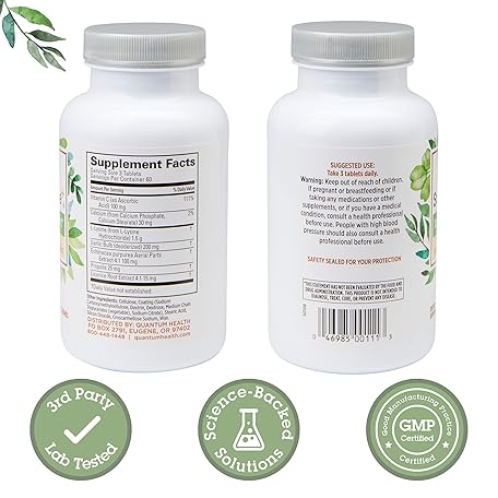 Thông tin sản phẩm Quantum Health SuperLysine+ Advanced Formula Immune Support Supplement Lysine 1500 mg, Vitamin C Echinacea Licorice Bee Propolis & Odorless Garlic Daily Wellness Blend for Women & Men - 180 Tablets