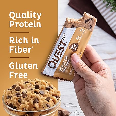 Thông tin sản phẩm Quest Nutrition Chocolate Chip Dough Cookie Protein Bars, 21g Protein, 1g Sugar, 4g Net Carb, High Fiber, Gluten Free, Keto Friendy, 12 Count