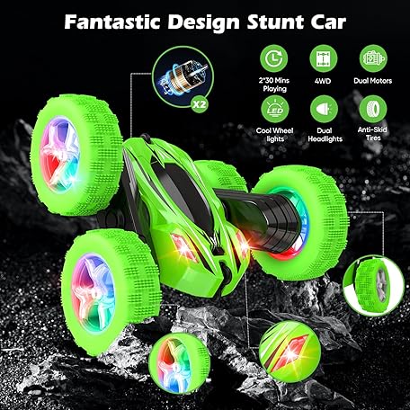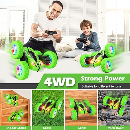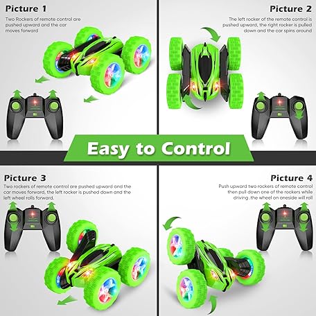 Thông tin sản phẩm Qumcou Remote Control Car for Boys 4-7,RC Cars Toys for Ages 5-7, 2.4Ghz Fast Double-Sided 360°Rotating Toy Cars with Headlights and Wheel Lights, Christmas Birthday Gifts for Boys Age 6-12, Green