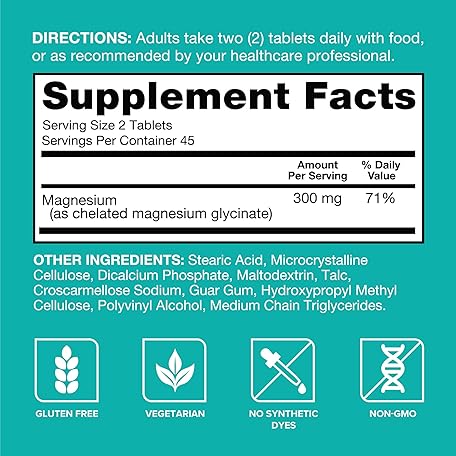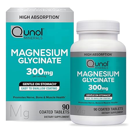 Thông tin sản phẩm Qunol Magnesium Glycinate 300mg, 100% Glycinate Chelated Magnesium Supplement, 90ct Tablets