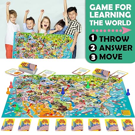Thông tin sản phẩm QUOKKA Board Game 1 to 10 Players - Learning, Educational - Geography, United States - 120 Question Cards, Top Facts - Indoor, Outdoor - Kids, Teens, Adults, Family