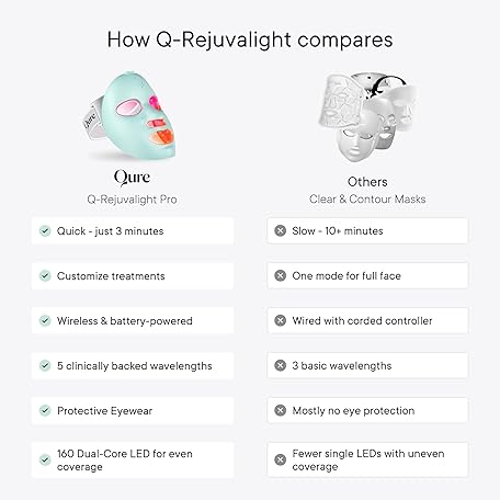 Thông tin sản phẩm Qure Red Light Therapy for Face – LED Mask with 5 Light Modes for Anti-Aging, Acne, Wrinkles & Dark Spots, 3-Min Wireless Daily Treatments, Smart App Control with Reminders, FDA Cleared