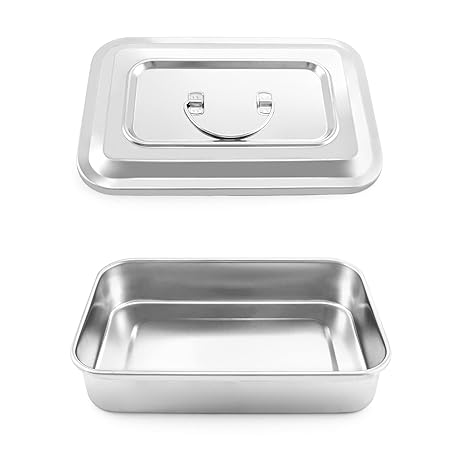 QWORK Medical Stainless Steel Instrument Tray Organizer Holder with Lid and Handle Grip for Surgical Medical Dental Instruments, 9.5" x 6.3" x 2", 2 Pack