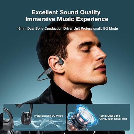 Qyzue Bone Conduction Headphones, Open Ear Headphones Wireless Bluetooth with Mic, Superior Sound Running Headphones 10H Playtime, Comfortable Fit Waterproof for Music, Workouts, Travel