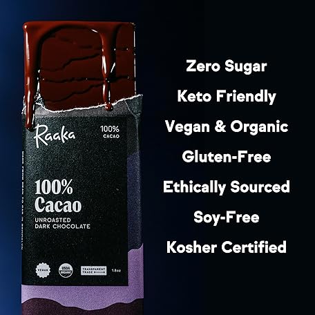Thông tin sản phẩm Raaka 100% Dark Chocolate Bars - Unsweetened, Bitter, Sugar Free, Pure Cacao - Organic, Vegan, Soy Free, Gluten Free, Kosher, Keto, Nut Free - 1.8oz 100% Chocolate Bars, 3-Pack
