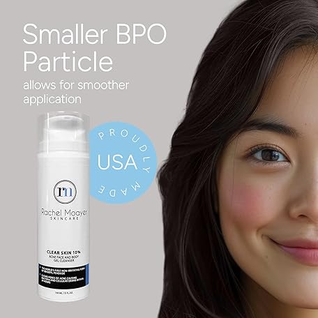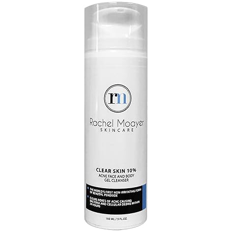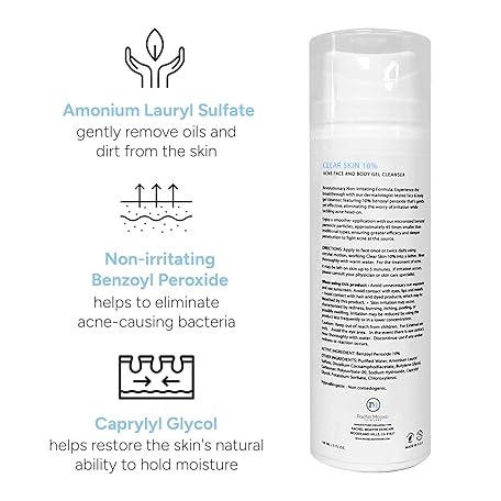 Rachel Moayer Clear Acne Face Wash & Acne Body Wash Gel Cleanser with 10% Benzoyl Peroxide, Ideal for Back Acne, Clear and Prevent Breakouts with Body Wash for Acne Prone Skin, Non-Irritating Formula