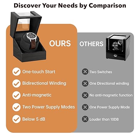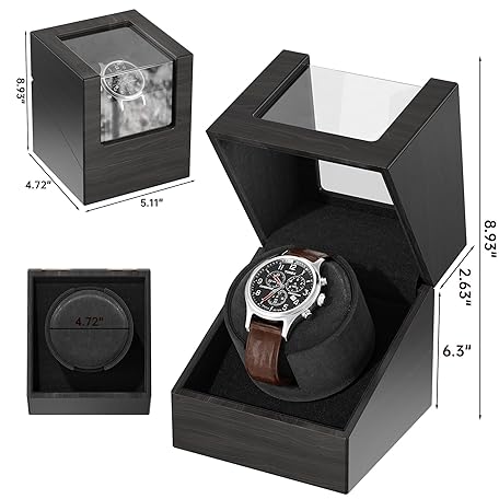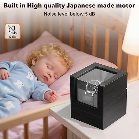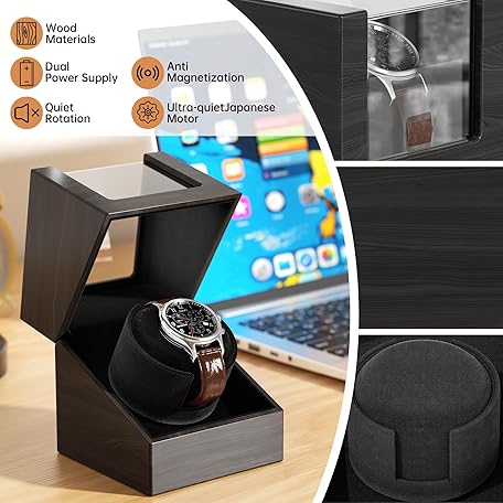 Thông tin sản phẩm Racokky Automatic Single Watch Winder Box for Rolex and Other Watches, Ultra Quiet Japanese Motor, Self Winding Rotating Wooden Watch Case, Battery or AC Powered, Premium Watch Box for Men and Women