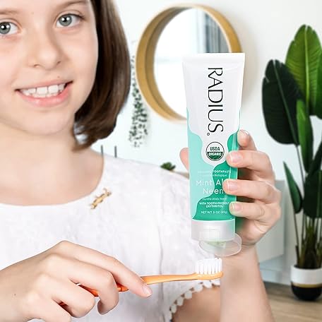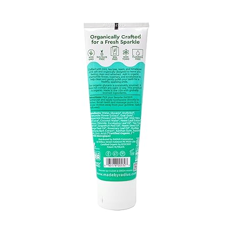 Thông tin sản phẩm RADIUS Toothpaste, Mint Aloe Neem, 3 oz, USDA Organic Non-Toxic Chemical-Free Gluten-Free, Designed to Improve Gum Health & Prevent Cavities, Pack of 1