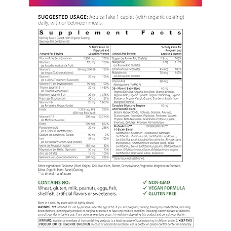 Thông tin sản phẩm Rainbow Light 35+ Mom & Baby + Multivitamin | 60 Caplets | Prenatal and Postnatal Nutrition | Real Food Nutrients, Digestive Enzymes & Probiotics | Essential Vitamins and Minerals for Women
