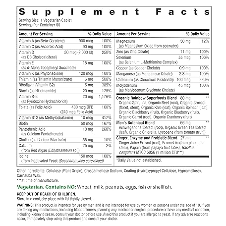 Thông tin sản phẩm Rainbow Light Mens One Multivitamin, Men's Daily Multivitamin Provides High-Potency Immune Support, With Vitamin C, Vitamin D and Zinc, Vegetarian, 60 Count