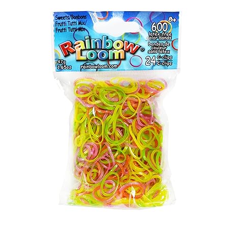 • Rainbow Loom® Sweets Frutti Tutti Mix Rubber Bands with 24 C-Clips (600 Count)