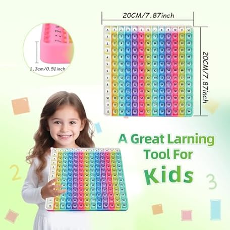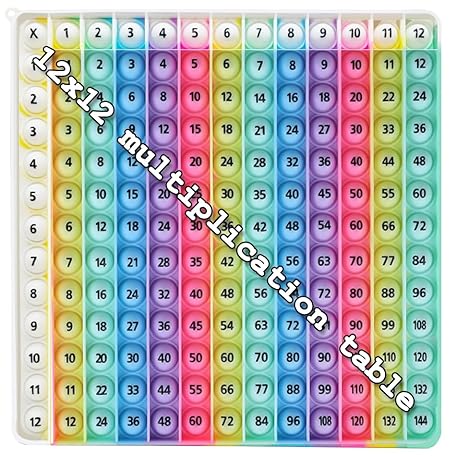 Rainbow Multiplication Table pop Fidget Toys Educational Math Learning Board Game, 12x12 Times Tables Practice, Colorful Silicone Push Bubble Sensory Toy Abacus for Kids Math