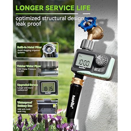 Thông tin sản phẩm RAINPOINT Sprinkler Timer, Programmable Water Timer for Garden Hose, Outdoor Soaker Hose Timed with Rain Delay/Manual/Automatic Watering System, Digital Irrigation for Yard, Lawn, 1 Outlet