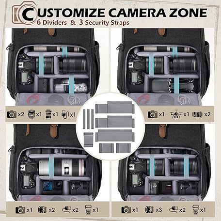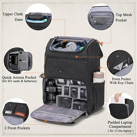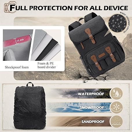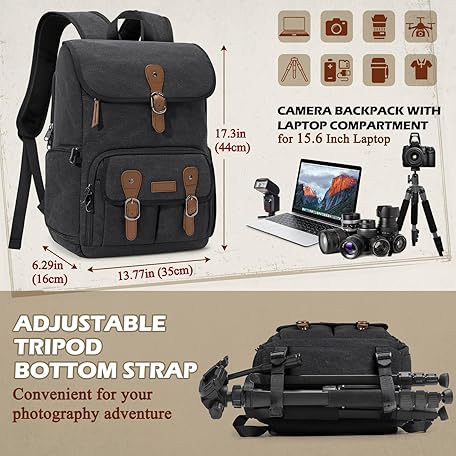 RAINSMORE Camera Bag Backpack for DSLR/SLR Mirrorless 15.6 Inch Laptop Camera Back Pack for Photographers Anti-Theft Photography Bags Case with Tripod Holder & Rain Cover, Black