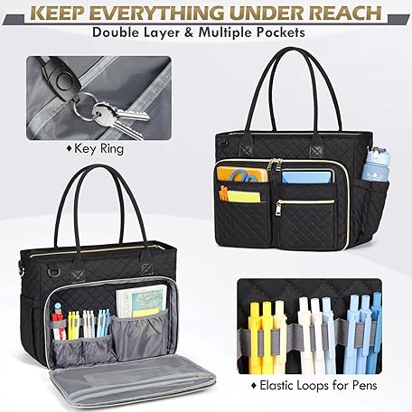 RAINSMORE Teacher Tote Bag 15.6 inch Laptop Bag for Women Work Bags Laptop Tote Nurse Bag Professional Computer Messenger with Insulated Pocket, Laptop Briefcase for Office, College, Nursing, Black