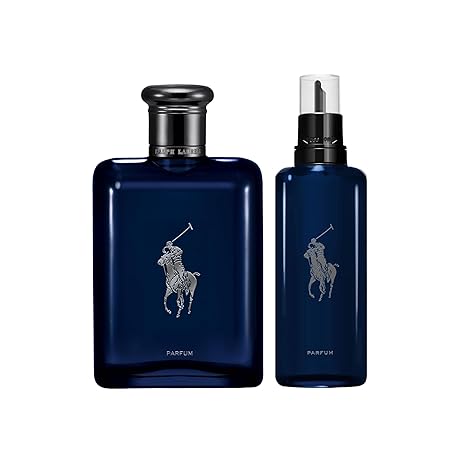 RALPH LAUREN FRAGRANCES Polo Blue - Parfum - Men's Cologne - Refillable Cologne Set - With Citrus, Oak, and Vetiver - Intense Fragrance - 6.7 Fl Oz Bottle & 5.1 Fl Oz Refill