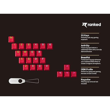 Sản phẩm Ranked Rubber Keycap Set | Double Shot Translucent | OEM Profile for Mechanical Gaming Keyboard (Red, 23 Keys) đang được bán với giá ưu đãi là $16.35 tại nước Mỹ.