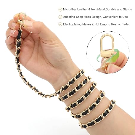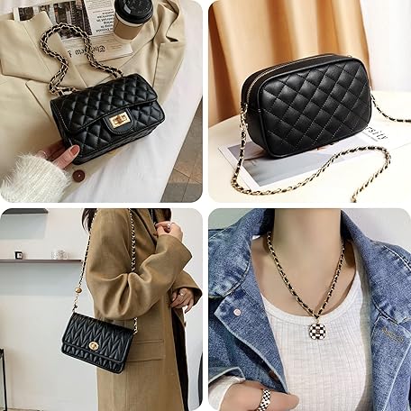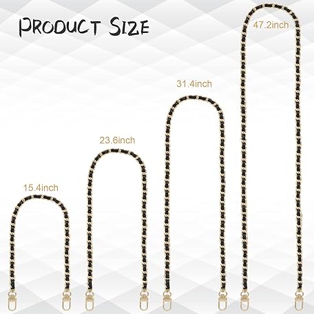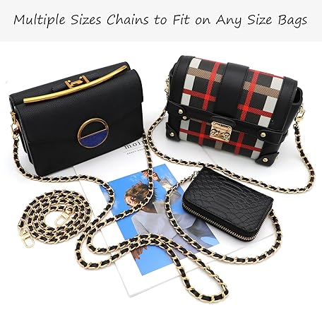 RAPUDA Gold Purse Chain & Strap, 4 Sizes - DIY Handbag, Shoulder, Crossbody Bag Chain - Leather, Braided - 15.4, 23.6, 31.4, 47.2 Inch - Black/Gold