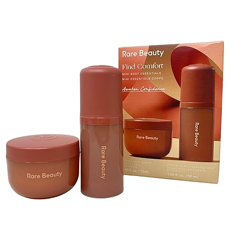 Rare Beauty Mini Find Comfort - Awaken Confidence- Body Essentials Gift Set - Mini Bouncy Body Cream and Mini Body & Hair Fragrance Mist.