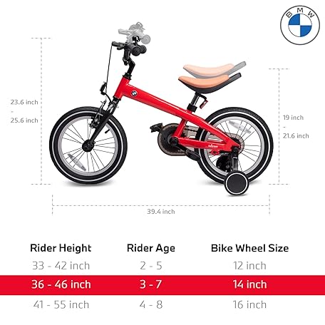 Thông tin sản phẩm RASTAR BMW 14 Inch Toddler Bike with Training Wheels for Boys and Girls Age 3-7, a Valuable Outdoor Gift of Kids Light Weight Bicycle for Children 3 4 5 6 7 Years Old, Red