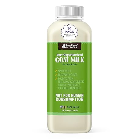 Raw Paws Raw Unpasteurized Goat Milk for Dogs & Cats, 16-oz, 14 Pack - Pet Milk Replacer for Puppies & Kittens, Goat Supplement for Dogs, Sensitive Stomach Dog Food Topper, Frozen Raw