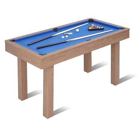 RAYKEEP 54" Portable Pool Table - Billiard Table for Kids & Adults with 2 Cues, Triangle Rack, Chalk & Brush - Compact Wooden Game Table for Home, Game Room, Indoor & Outdoor