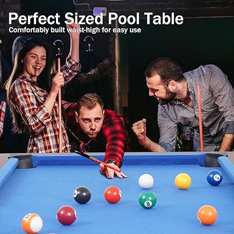 • RAYKEEP 54" Portable Pool Table - Billiard Table for Kids & Adults with 2 Cues, Triangle Rack, Chalk & Brush - Compact Wooden Game Table for Home, Game Room, Indoor & Outdoor